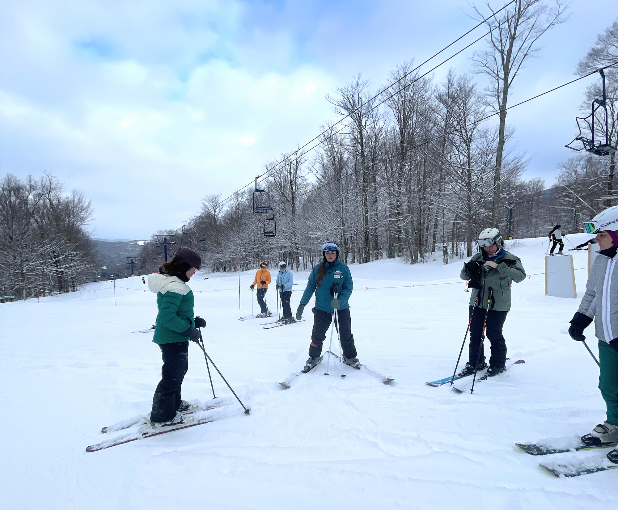 My instructor was top-notch: technically sharp, emotionally intuitive, and armed with both drills and chocolate. She led us through skill-building exercises with clarity and humor. We practiced balance, parallel turns, side slipping, skiing backwards, and hockey stops. We skied varied terrain on Morse Mountain and worked on adapting to the daily conditions.
